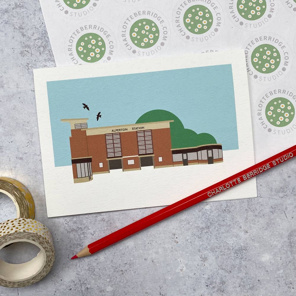 Illustrated card of Alperton Station created exclusively by Charlotte Berridge.