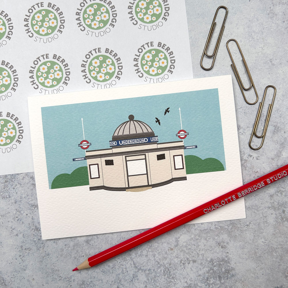 Illustrated card of Clapham Common Station created exclusively by Charlotte Berridge.
