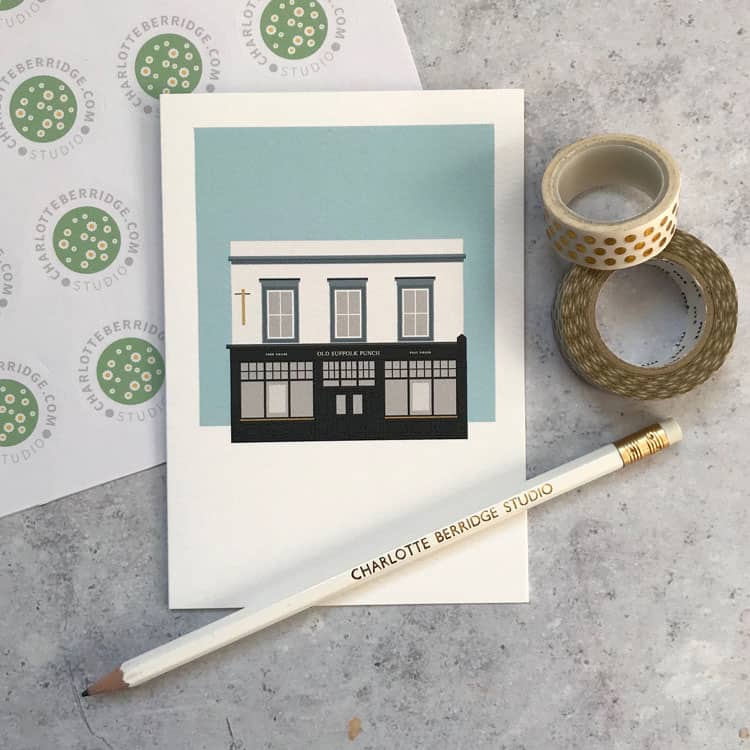 This card features the Old Suffolk Punch in Hammersmith created exclusively by Charlotte Berridge.